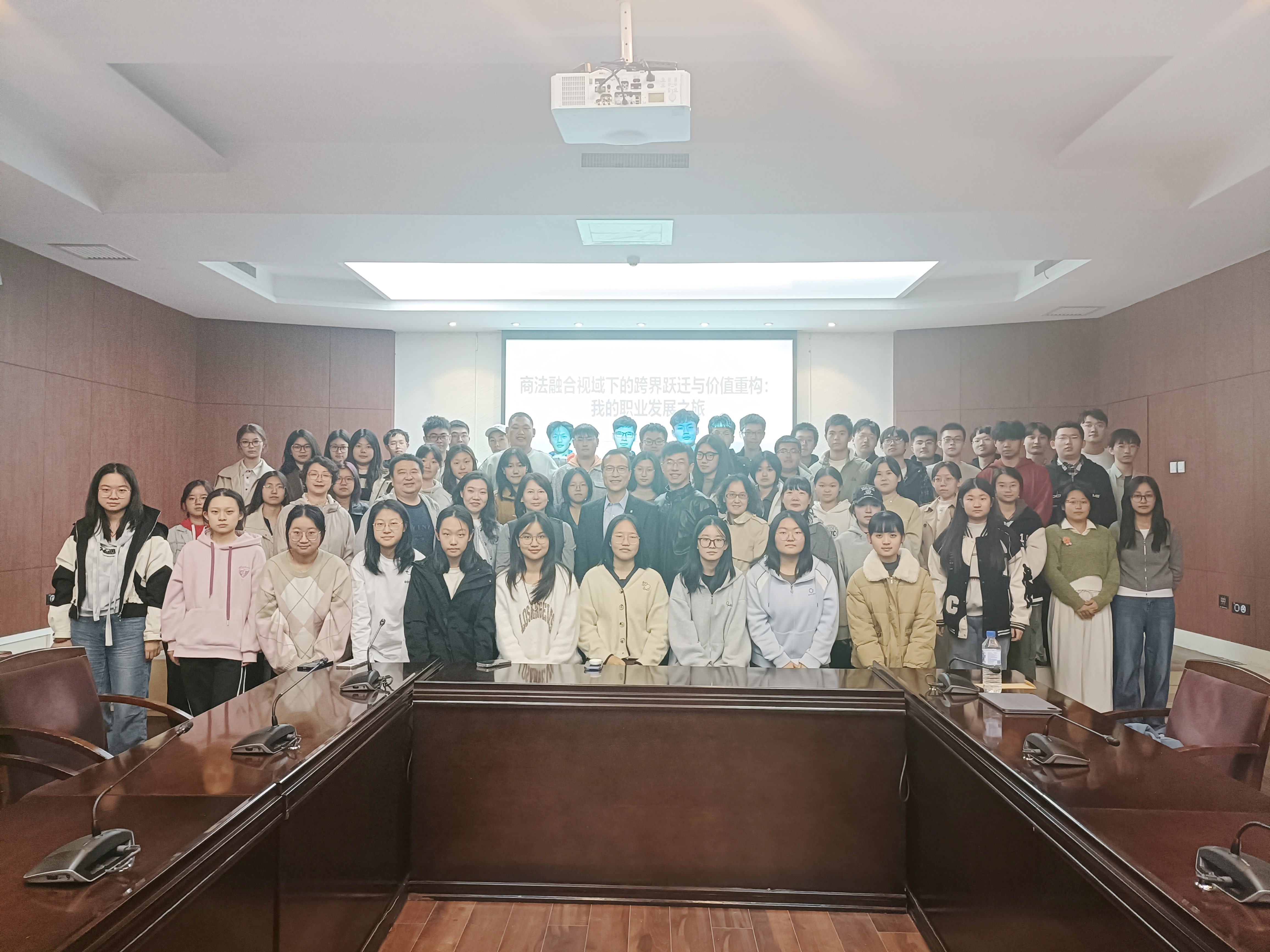2025年10月12日14时,商学与管理学院实践教学讲座于匡亚明楼第一会议室如期举行。本次讲座特邀北京国枫律师事务所合伙人、陕西华铭天成教育科技有限公司董事长、吉林大学校友王勇老师担任主讲,以“商法融合视域下的跨界跃迁与价值重构:我的职业发展之旅”为题作专题报告。商学与管理学院马捷副院长、技术经济系主任郭润萍老师、系书记任伶老师、副主任董碧松老师、刘玉国老师、王浩老师、曙光老师以及2025级工商管理-法学和大数据管理-法学双学位班本科生、工商管理(数字经济与投资管理方向)本科生参加本次讲座。本次讲座由马捷副院长主持。