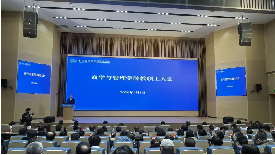 春潮澎湃启新程,凝心聚力再出发。4月8日下午,商学与管理学院在东荣会议中心一楼报告厅召开2026年第一次教职工大会。学院全体教职工参加会议。会议由党委书记赵军主持。
