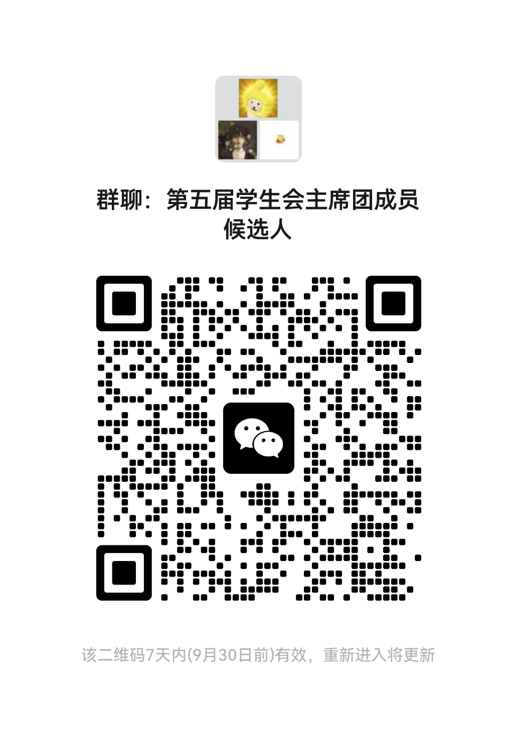 报名人员扫描二维码加入微信群,如实填写《商学与管理学院学生会主席团成员候选人报名表》,将PDF扫描版发送至1799075669@qq.com,文件命名方式为:主席团竞选+姓名+学号。每人仅限提交一份报名表并在报名表后附成绩单作为佐证材料。