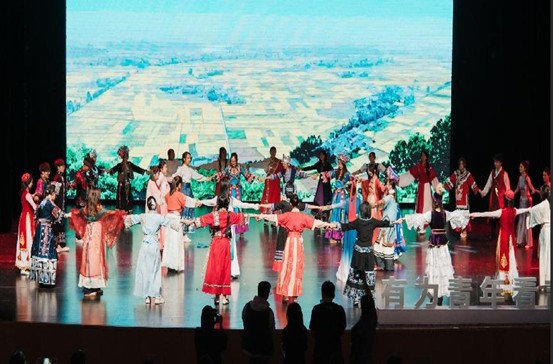 歌舞《少年中国说》以磅礴气势展现新时代青年的爱国情怀;大型歌舞《同心筑梦·舞韵中华》以多民族共舞形式诠释民族团结内涵;合唱《明天会更好》唱响了青年一代对未来的憧憬与担当。整场演出格调昂扬、导向鲜明,在艺术呈现中自然融入了爱国主义、民族团结与时代责任教育,其他节目也从学术规范、学业发展等维度为新生成长提供指引,充分彰显学院以文化人、以美育人教学理念。