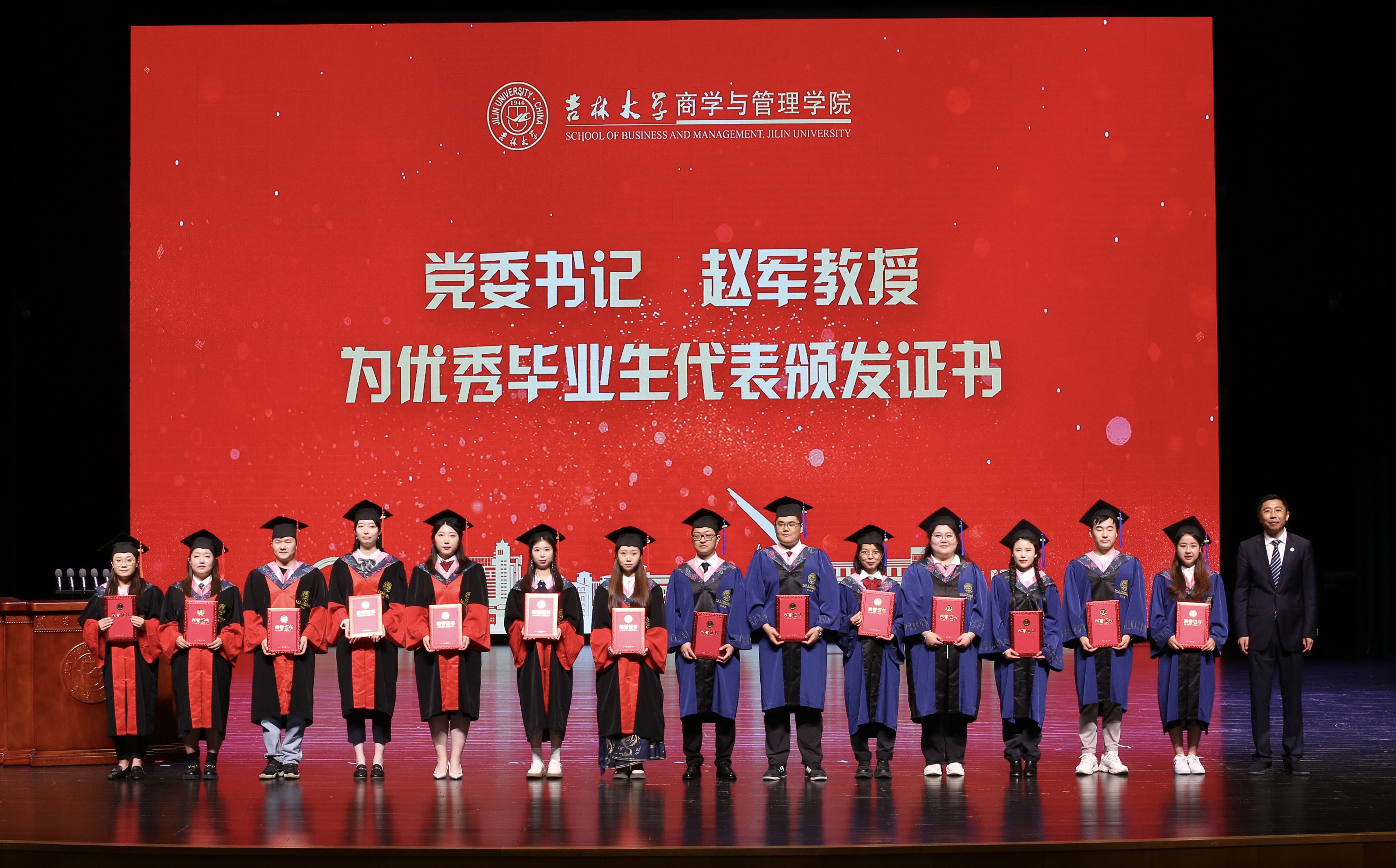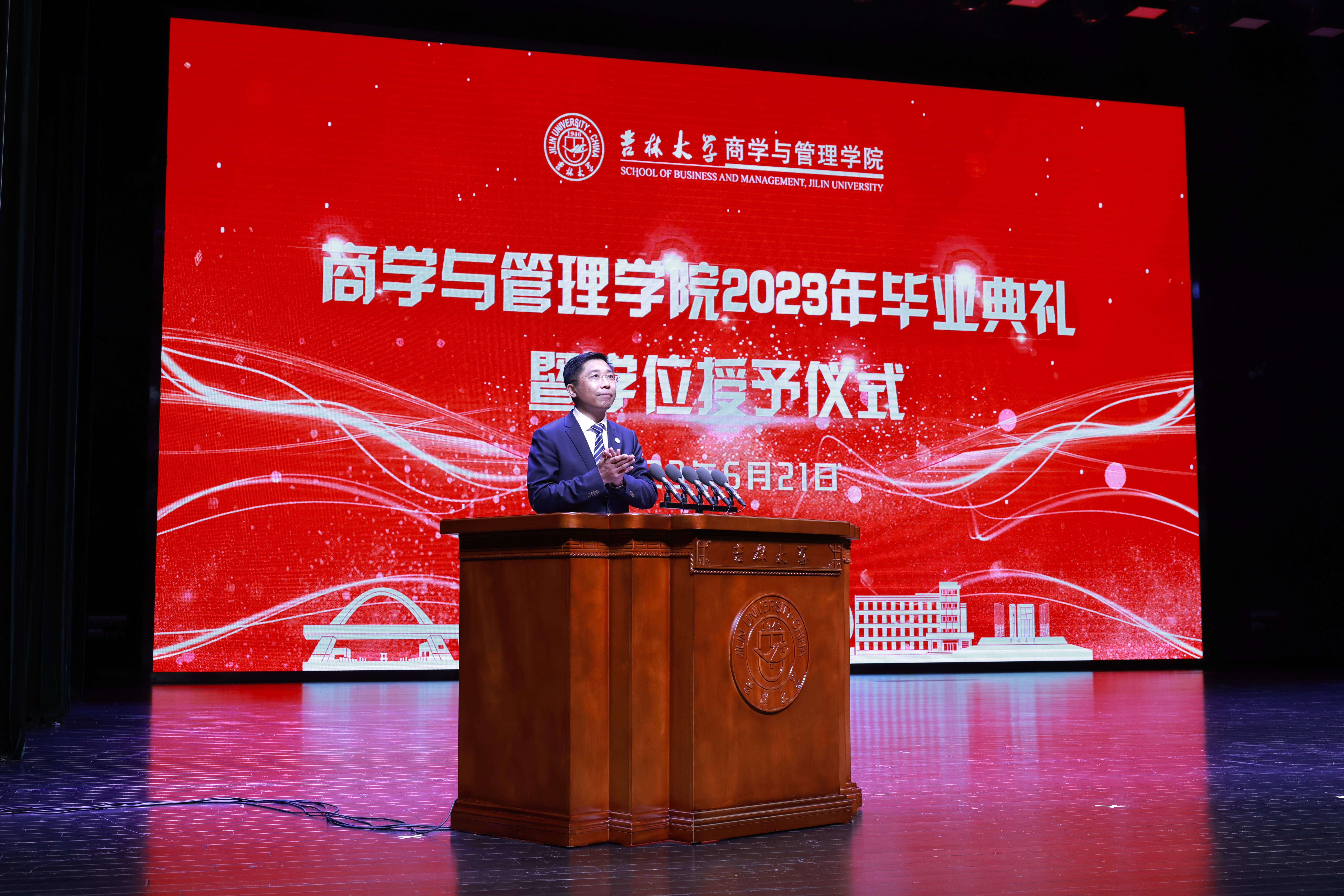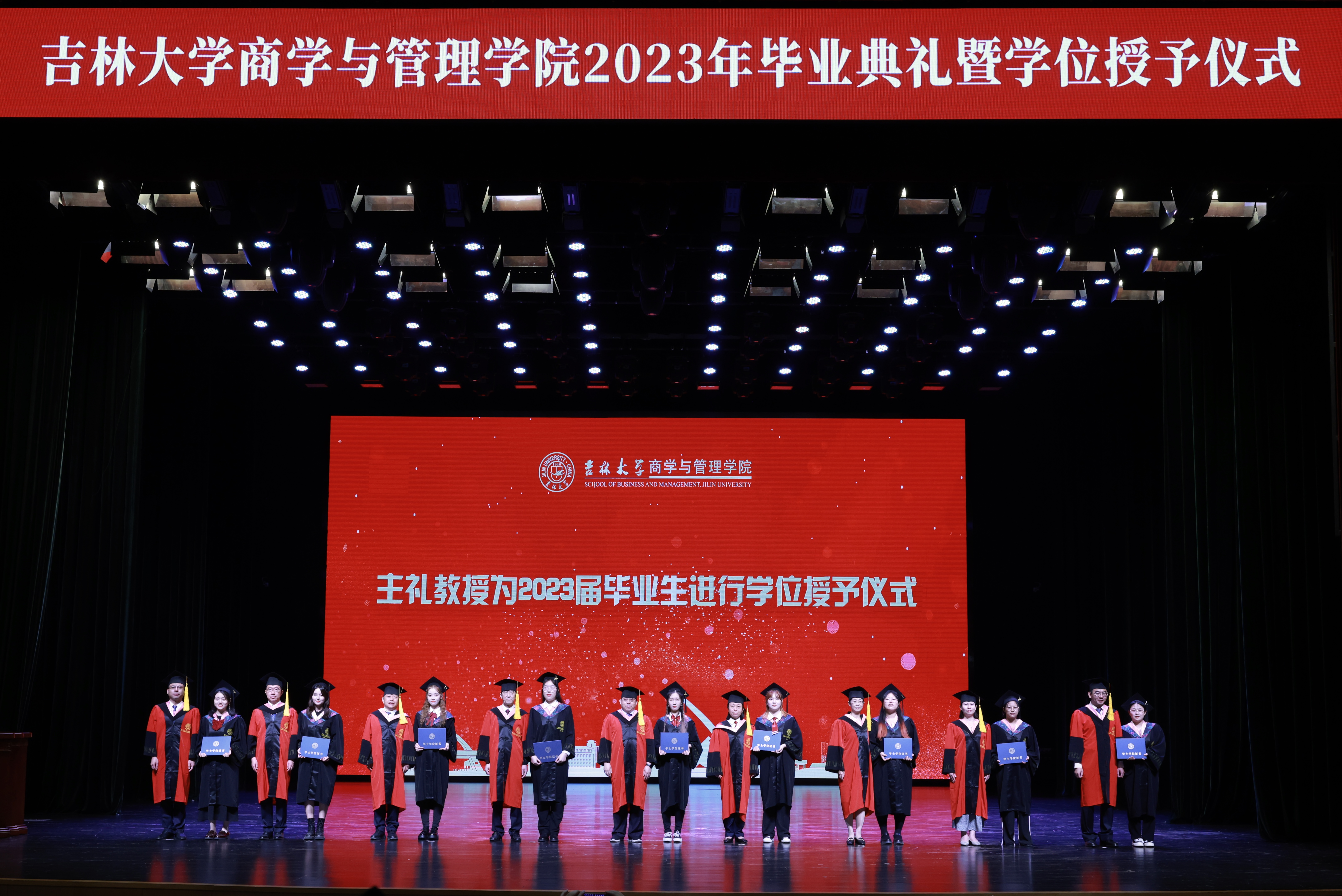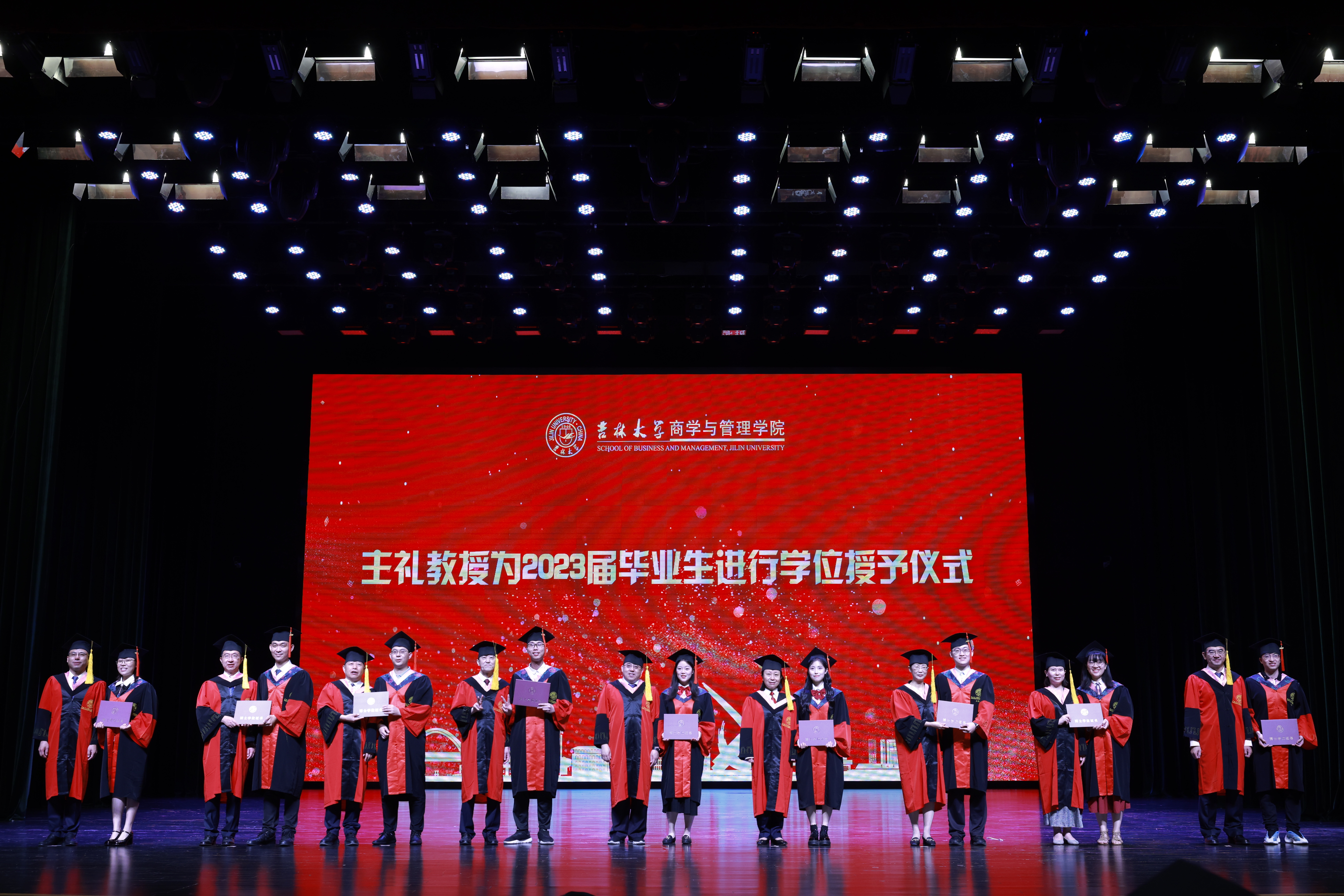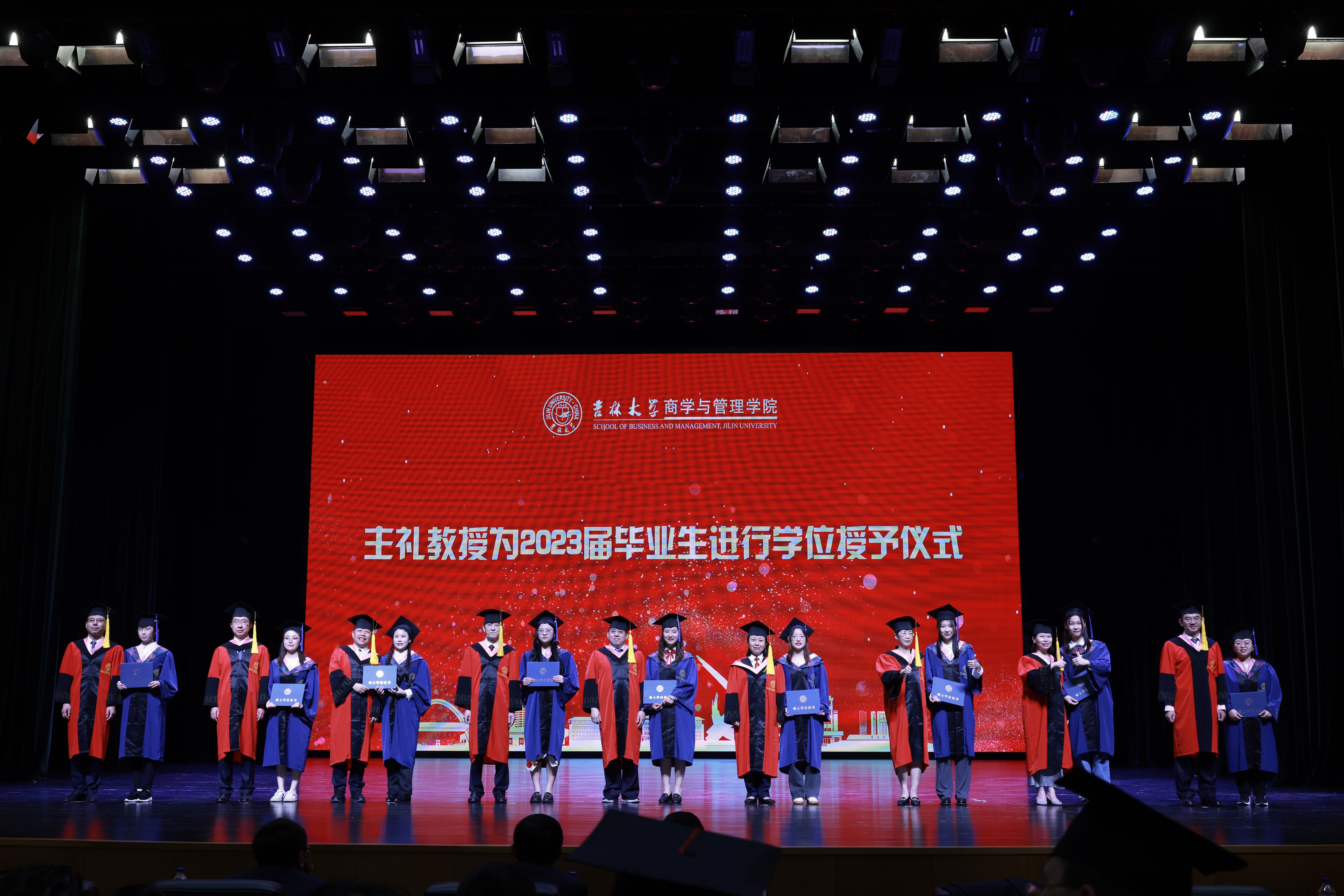 六月的离别是山高水长,少年的征途是星辰大海。6月21日上午8:30,吉林大学商学与管理学院2023年毕业典礼暨学位授予仪式在鼎新大讲堂隆重举行。商学与管理学院领导班子全体成员、数量经济研究中心领导、各系教师代表、校友代表、家长代表、行政教职工、2023届全体本硕博毕业生参加了典礼。参加本次毕业典礼的还有因受疫情影响未能参加学位授予仪式的2020、2021、2022届111名毕业生。典礼由商学与管理学院党委书记赵军教授主持。