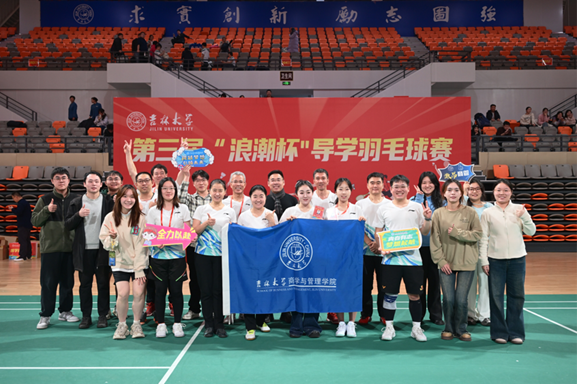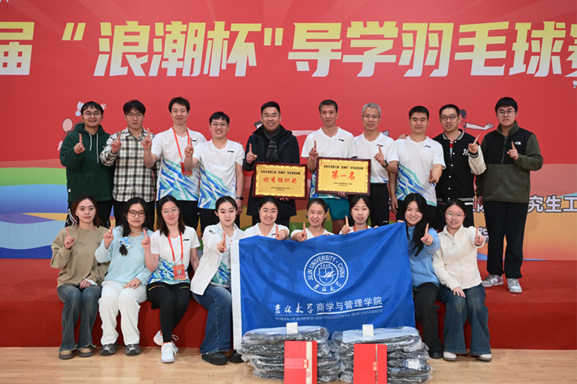 为持续丰富校园文化生活,深化师生交流,营造积极健康的导学氛围,提升师生身体素质和团队凝聚力,2025年11月29日至30日,商学与管理学院代表队参加了由吉林大学研究生院、研究生工作部在中心校区宋治平体育馆三楼篮球馆举办的第三届“浪潮杯”导学羽毛球团体赛。党委副书记李帅老师、副院长张小宇老师带领研工老师及志愿者到比赛现场,为参赛师生加油助威并做好后勤保障服务。经过两天的激烈角逐,商管学院代表队凭借出色的发挥和顽强拼搏、敢拼敢打的团队精神,最终勇夺冠军,展现了学院师生团结奋进、追求卓越的精神风貌。